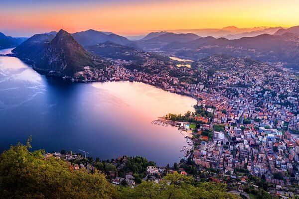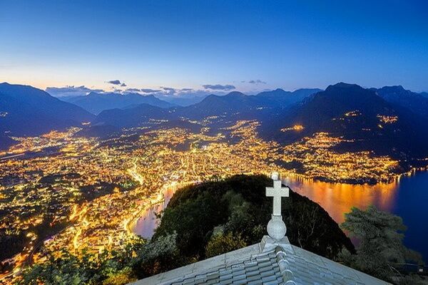 תצפית לעבר אגם לוגאנו והעיר לוגאנו ממונטה ברה (צילום: ValentynVolkov)