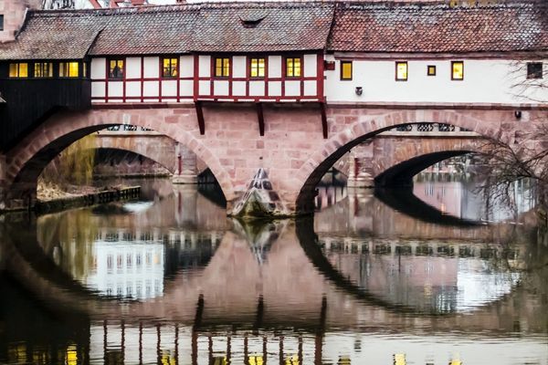 גשר הנס-זקס, שהיה ביתו של התליין העירוני של נירנברג, חוצה את נהר פגניץ (צילום: Leonhard Niederwimmer)