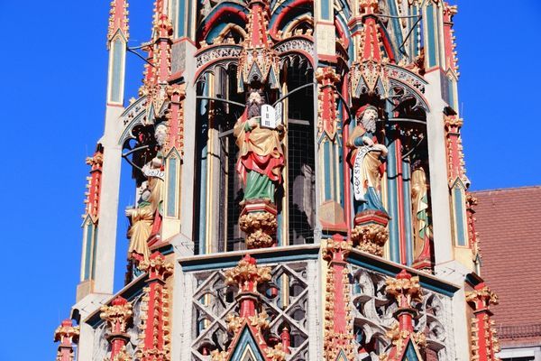 מהמלון הנפלא שלנו – הולידיי אין נירנברג ( Holiday Inn Nürnberg ), בדרום העיר העתיקה, קצרה הדרך לסיור במרכז העיר. בקרבתו נמצאת תחנת הרכבת התחתית ( U-Bahn ), עמה ניתן להגיע היישר משדה התעופה, חנות הכלבו הענקית Wöhrl וחנות של רשת C&A . מולן ניצב המגדל הלבן, שכמו שאר מגדלי העיר העתיקה וחומותיה, שוחזר לאחר שנהרס בהפצצות. ביניהם בולטת מזרקת קרוסלת הנישואין ( Ehekarussell ), שלא משאירה ספק לגבי יחסו של האומן... עם פסלי ברונזה המתארים נישואין שלא צלחו (בשפת המעטה...), מהדייט הראשון ועד הסוף הטרגי.