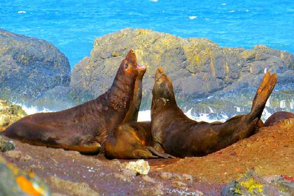 במהלך השיוט לאורך החוף, בסירות הזודיאק של הספינה, בעודנו נהנים מנופי ההרים היפהפיים, אנחנו פוגשים בענק מרשים שמותיר אותנו פעורי פה. פיל ים בוגר, במשקל כמה טונות, סיים זה עתה את מנוחת הצהריים ובכוונתו לשוב לים. לא ייאמן כיצד גוש השרירים והשומן הזה דוהר במורד החוף וגולש אל המים בקלות מרשימה. במקביל למחזה הזה, שני פילי ים צעירים מנסים לגנוב את ההצגה, מזדקפים ומתחילים להשוויץ בכוחם בקרב, ממנו שניהם יוצאים חבולים ומדממים.