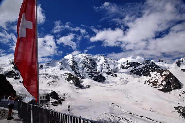 אל הקרחון עליו צפינו מהמלון, אנחנו מגיעים בנסיעה קצרה ברכבת וברכבל, שמגיע לנקודת התצפית דיאבולצה ( Diavolezza ) בגובה 2,973 מ'. מראה הקרחון הענק, הבוהק בלבן צחור, סוחט אינספור קריאות התפעלות ותקתוקי מצלמות. הפסגה המתנשאת מעליו – פיץ פאלו ( Piz Palü ), עוד תזמן לנו הפתעה בהמשך.
